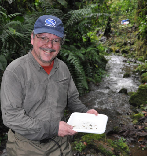 Finding aquatic insects in a pristine mid-elevation stream in Ecuador.
