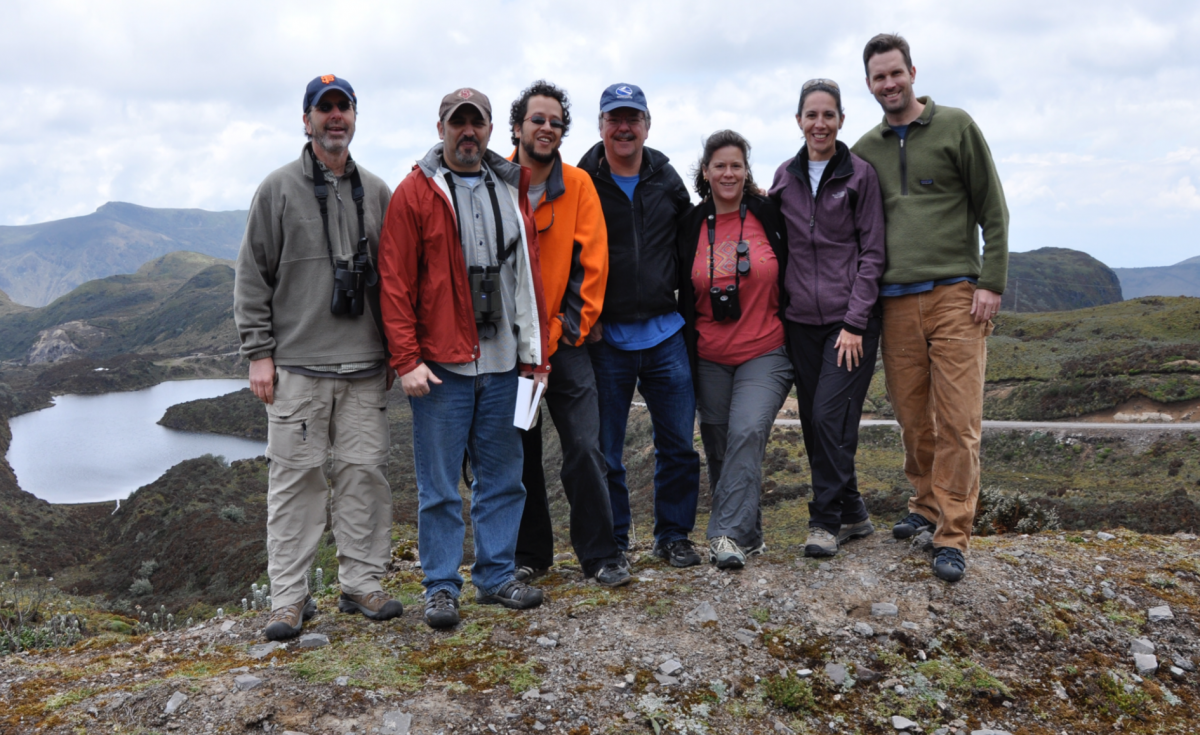 On a scouting trip for stream sampling locations (from a 4100 meter perch in the Andes) with colleagues (from left) Alex Flecker, Cameron Ghalambor, Juan Guayasamin Kelly Zamudio, Andrea Encalada and Chris Funk.