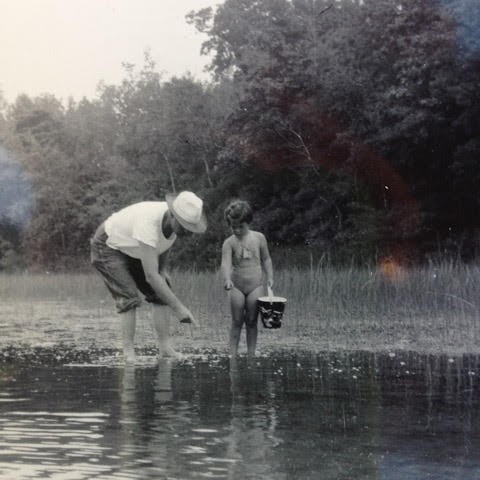 Wilson H. Power, age 42, right, introduces Mary E. Power, age 3, left, to the lake littoral zone near Dayton, Ohio.