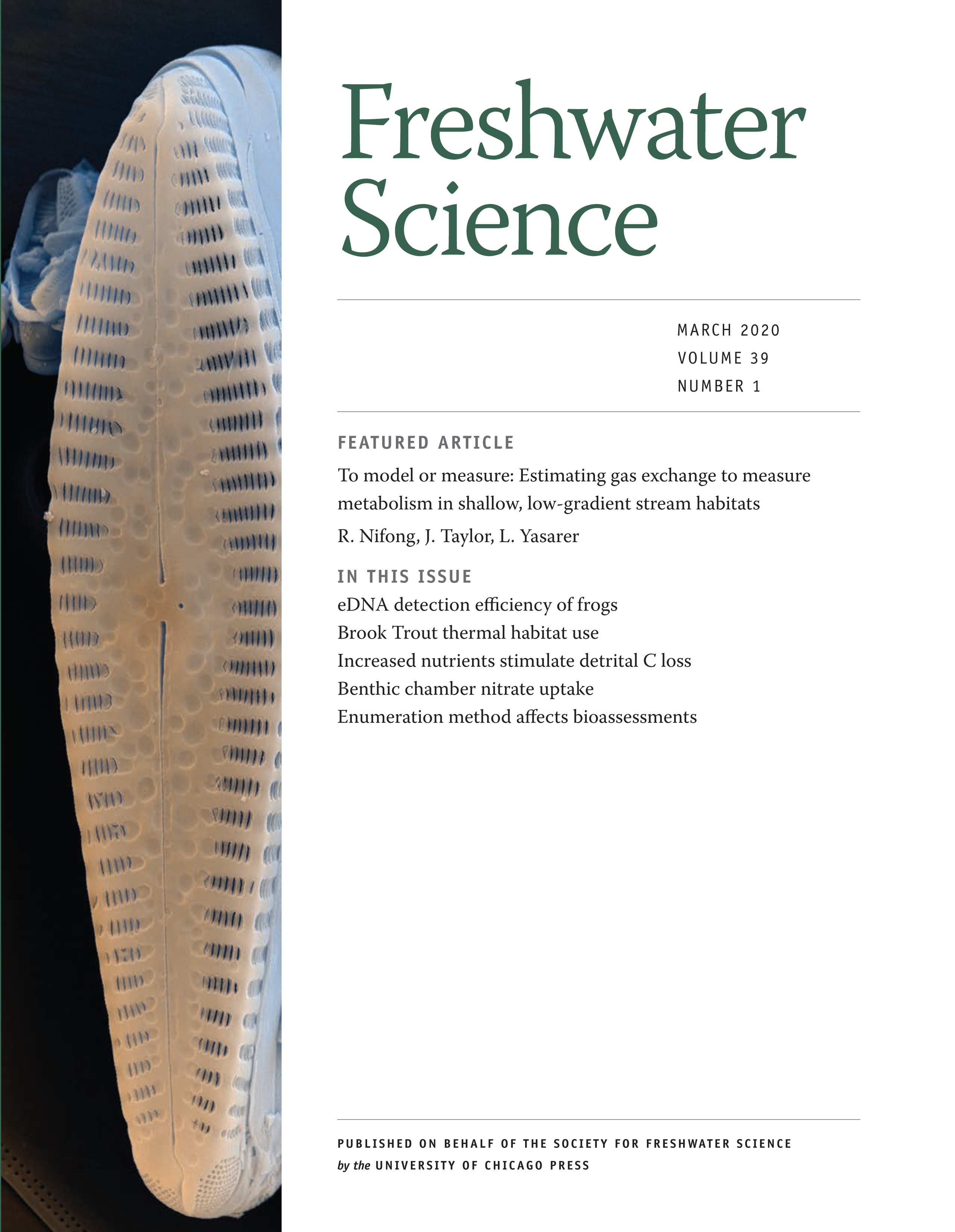 SFS membership includes access to all current and past issues of Freshwater Science. Featured articles are available below, courtesy of University of Chicago Press and the Society for Freshwater Science.